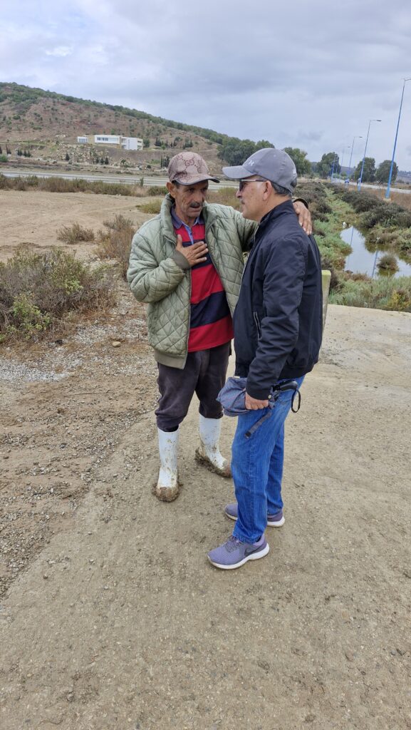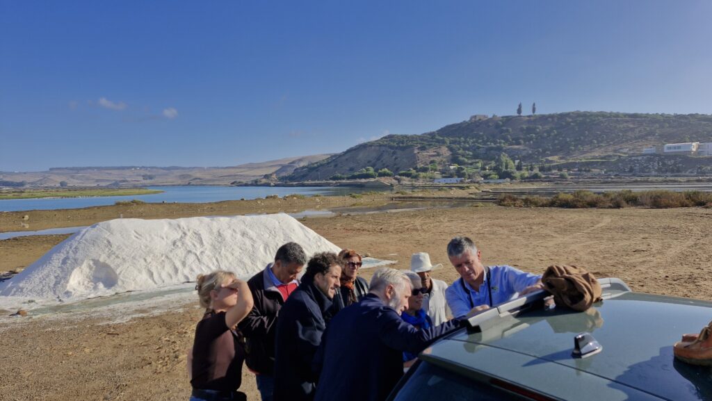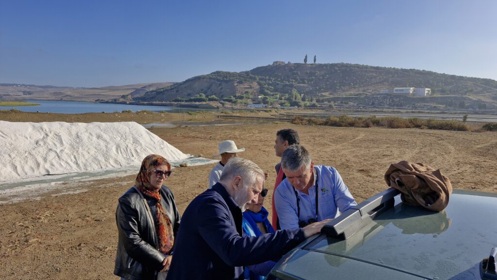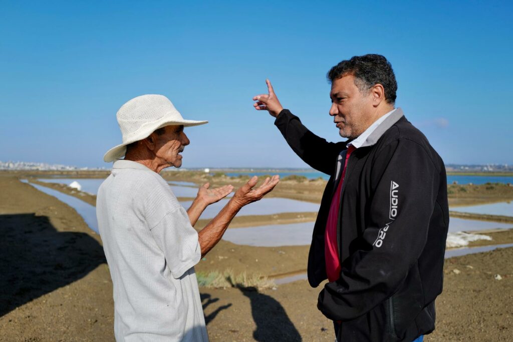 Posteriormente, Juan Martín realizó una visita técnica de diagnóstico a las salinas y marismas dirigida por Ali Beerah, salinero y presidente de la cooperativa SeLarache y por Mustafá Chetuan, salinero, con quienes ya había trabajado Salarte en 2019, a quienes acompañó Anass Amrani -director del yacimiento arqueológico de Lixus-, quien ofreció una mirada histórica sobre la relación entre la ciudad y sus humedales desde la Antigüedad.